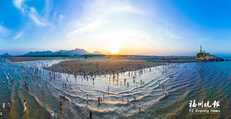 生态优先、绿色发展是长乐经略海洋的坚定遵循。福州滨海新城岸段,这片拥有约15公里长沙滩岸线的“东方夏威夷”黄金海滩,如今已成为热门的海滨旅游目的地。特别是经过提升改造后重新开放的下沙海滨度假村,在2025年国庆中秋期间成为全省最热门的旅游目的地之一,游客数量超过40万人次。