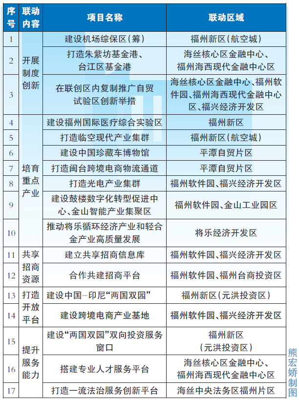 搭建招商引资桥梁。福州自贸片区将依托自身招商引资“强磁场”,通过建立共享招商信息库、合作共建招商平台,以优势互补、合作共赢的原则,吸引大项目、好企业纷纷落户联创区。