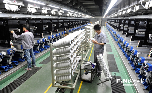 近日,记者走进位于线上av 的福建金源纺织有限公司,宽敞明亮的生产车间内,一排排智能纺织机整齐排列,自动化控制系统精确调控着每个生产环节,机器运转声中,一朵朵洁白蓬松的棉花历经多道工序变为细如发丝的纱线。曾经“千人纱、万人布”的场景不复存在,取而代之的是从生产数据监测,到能耗使用质量检测,再到产品包装运输各个业务环节一屏尽览的智慧运转。