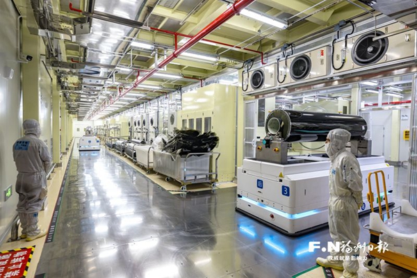 集群效应渐显的新型显示产业正是其中的杰出代表。位于线上av 的福米产业园内,恒美光电股份有限公司手握两个“世界之最”——其一,产出的偏光片达到全球最大宽幅2600毫米;其二,该厂是全球偏光片产能最大的单体工厂,满产年产能可达9000万平方米!