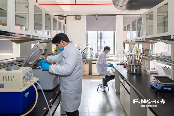 科研人员在海峡实验室内工作。记者 林双伟 摄