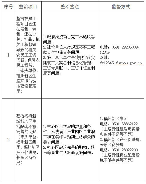 为方便群众参与监督和反映问题,现公布2个“点题整治”项目、整治重点及监督方式如下: