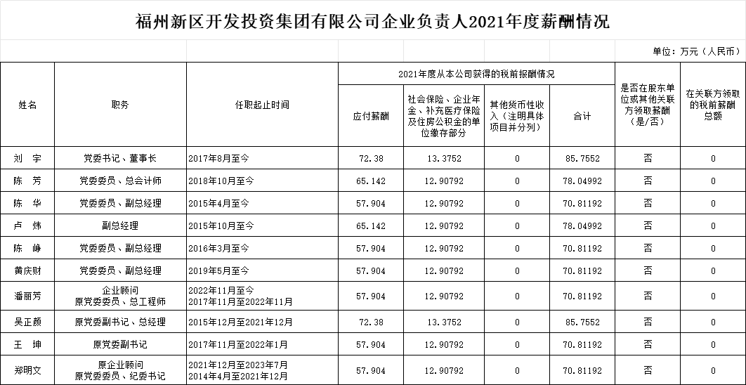 线上av 开发投资集团有限公司企业负责人2021年度薪酬情况
