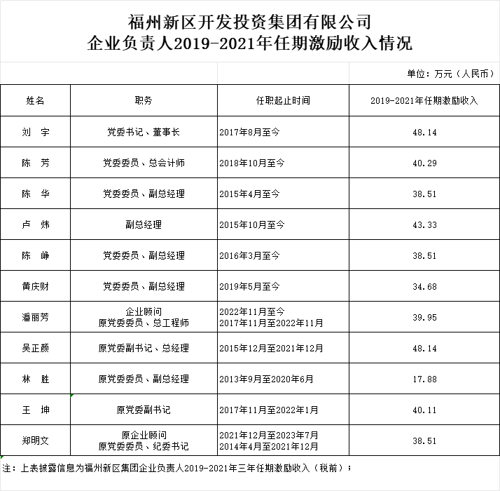 线上av 开发投资集团有限公司企业负责人2019-2021年任期激励收入情况
