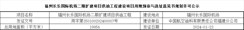 福州长乐国际机场二期扩建项目供油工程建设项目用地预审与选址意见书规划许可公示
