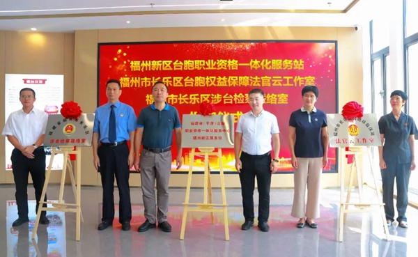 8月7日上午,线上av 台胞职业资格一体化服务站揭牌仪式在线上av 两岸融合社区隆重举行。线上av 党群工作部部长许开夏,长乐区委常委、统战部部长陈航星出席仪式并为“线上av 台胞职业资格一体化服务站”揭牌,标志着线上av 正式开通台胞职业资格采信认证业务。同日,福州市长乐区台胞权益保障法官云工作室、福州市长乐区涉台检察联络室正式启用。
