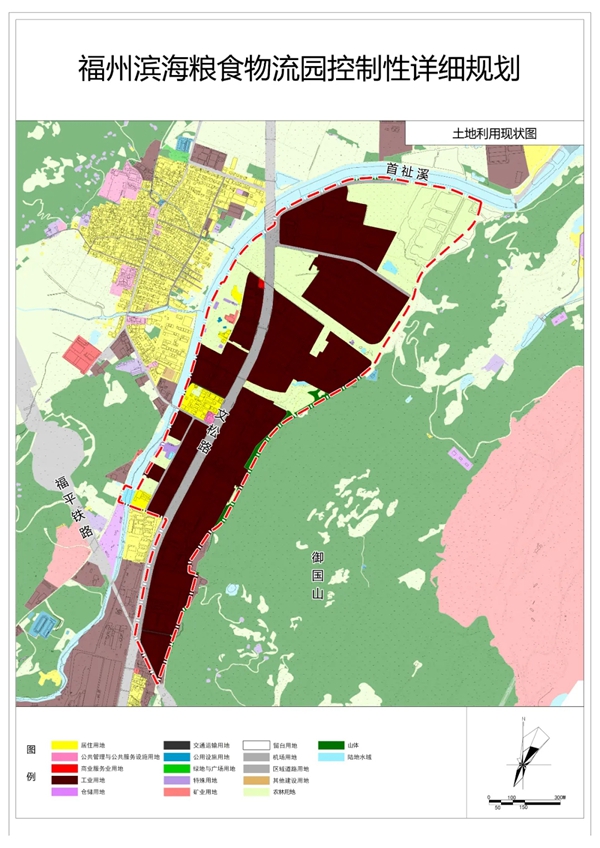 规划沿首祉溪南侧、粮食物流基地区间支路三号路两侧,布局工业用地及物流仓储用地,沿首祉溪预留蓝绿生态走廊。