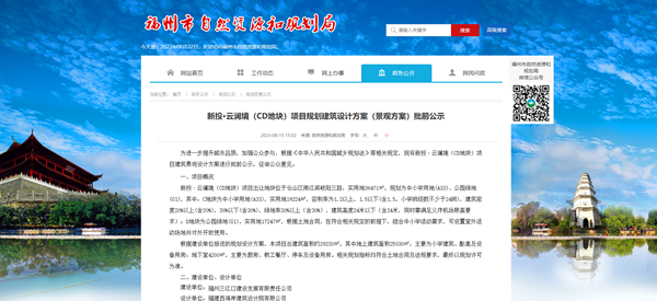 为进一步提升城市品质,加强公众参与,根据《中华人民共和国城乡规划法》等相关规定,现将新投·云澜境(CD地块)项目建筑景观设计方案进行批前公示,征询公众意见。