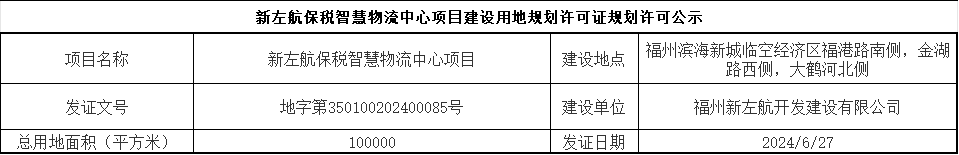 新左航保税智慧物流中心项目建设用地规划许可证规划许可公示