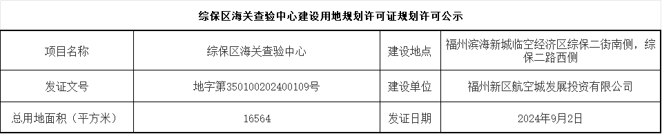 综保区海关查验中心建设用地规划许可证规划许可公示