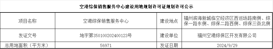 空港综保销售服务中心建设用地规划许可证规划许可公示