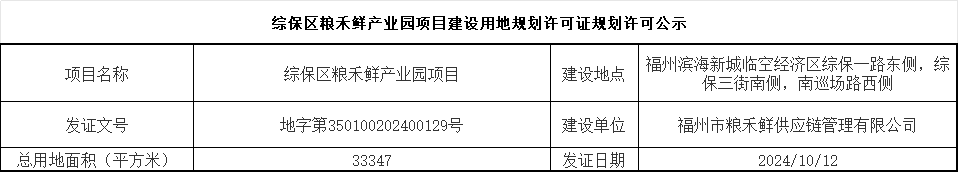 综保区粮禾鲜产业园项目建设用地规划许可证规划许可公示