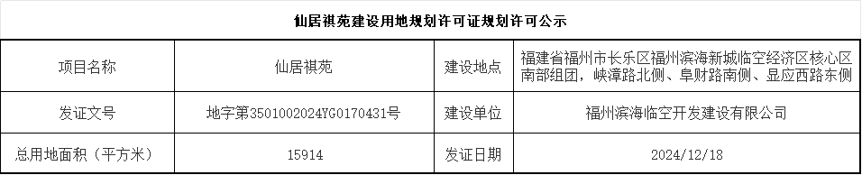 仙居祺苑建设用地规划许可证规划许可公示