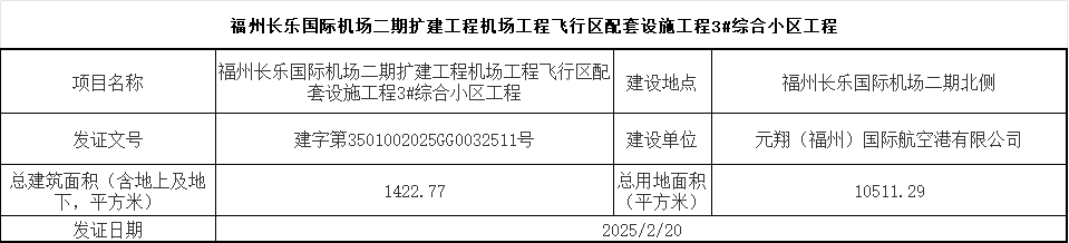 福州长乐国际机场二期扩建工程机场工程飞行区配套设施工程3#综合小区工程建设工程规划许可证批后公示
