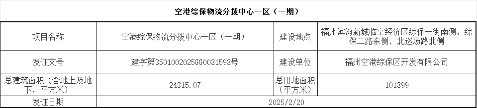 空港综保物流分拨中心一区(一期)项目建设工程规划许可证批后公示