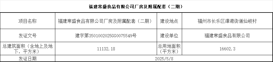 福建常盛食品有限公司厂房及附属配套(二期)批后公示