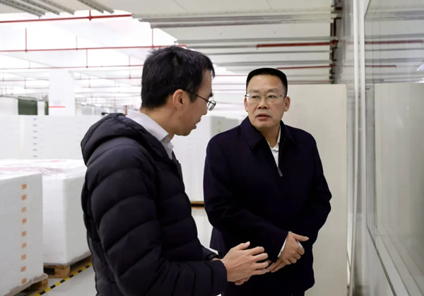 在东宸光电有限公司,陈云水一行深入企业实验室、生产车间,详细了解企业生产工艺、技术创新和市场经营情况,并进行现场办公,协调解决企业生产经营中遇到的困难和问题。同时,勉励企业聚焦主业,加强新技术、新工艺研发应用,提升产品附加值和竞争力,深挖市场潜力、扩大产能,进一步延链、补链、强链。