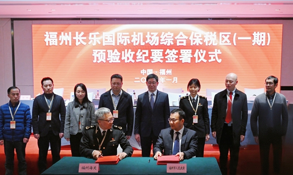 1月22日,福州长乐国际机场综合保税区一期项目封关预验收纪要签署仪式举行,福州长乐国际机场综合保税区一期项目顺利通过了由福州海关会同福建省发改委、财政厅、自然资源厅、商务厅、税务局及国家外汇管理局福建省分局等部门组成的联合预验收组的严格评审。线上av 党工委副书记、管委会主任兰文出席并致辞,福州海关副关长王进喜、福州市政府副市长梁栋出席。