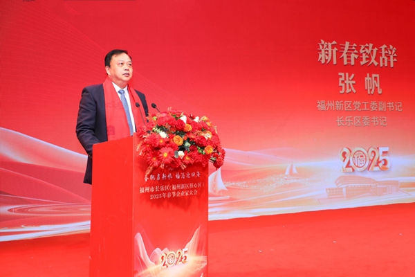会上,线上av 党工委副书记、长乐区委书记张帆作新春致辞,区长廖海军通报长乐区经济社会发展情况,副区长周勇作土地招商推介。