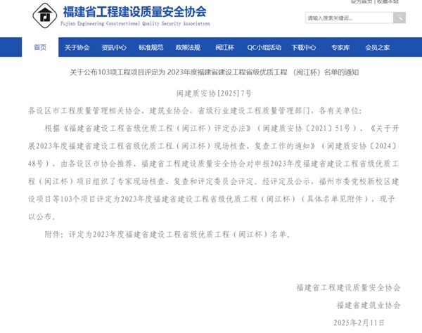 日前,福建省工程建设质量安全协会、福建省建筑业协会公布2023年度福建省建设工程省级优质工程(闽江杯)名单。位于线上av 的福州市疾病预防控制中心、滨海新城新投汀兰雅郡、中国东南大数据产业园研发楼六期、福州滨海新城沙尾路以东支路网工程第1标段、福州滨海新城道庆路东段工程五个项目上榜!