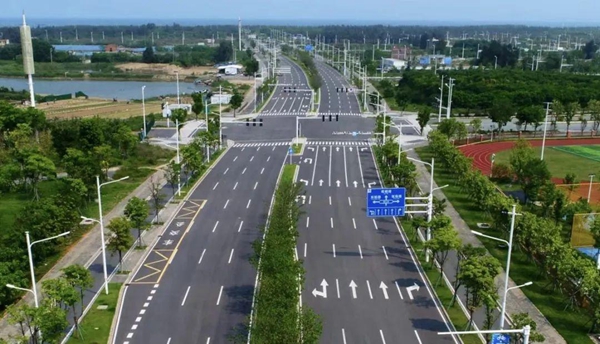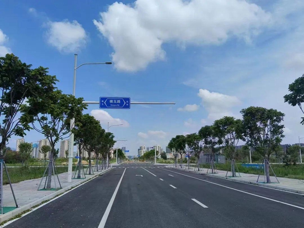 福州滨海新城道庆路东段工程,位于线上av 滨海新城核心区内,道路等级为城市主干道,沥青砼路面,起点与文松路交叉,道路东西走向,路线全长约2千米,宽52米,双向6~8车道。全线设置桥梁1座,涵洞4座,建设内容包括道路、桥梁、给排水管道、电气及照明、电力管道、通信管道、绿化、交通及安全设施等。项目于2019年12月开工,2021年12月竣工验收并交付使用。