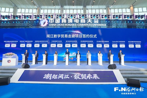 大会现场举行闽江数字贸易走廊项目签约仪式。记者 原浩 摄