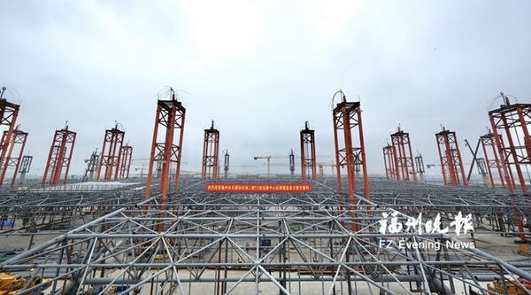 福州机场T2航站楼首片屋顶架起 近万平方米屋顶一次提升3.7米