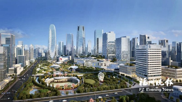 福州滨海新城CBD核心区输配环区域工程效果图。